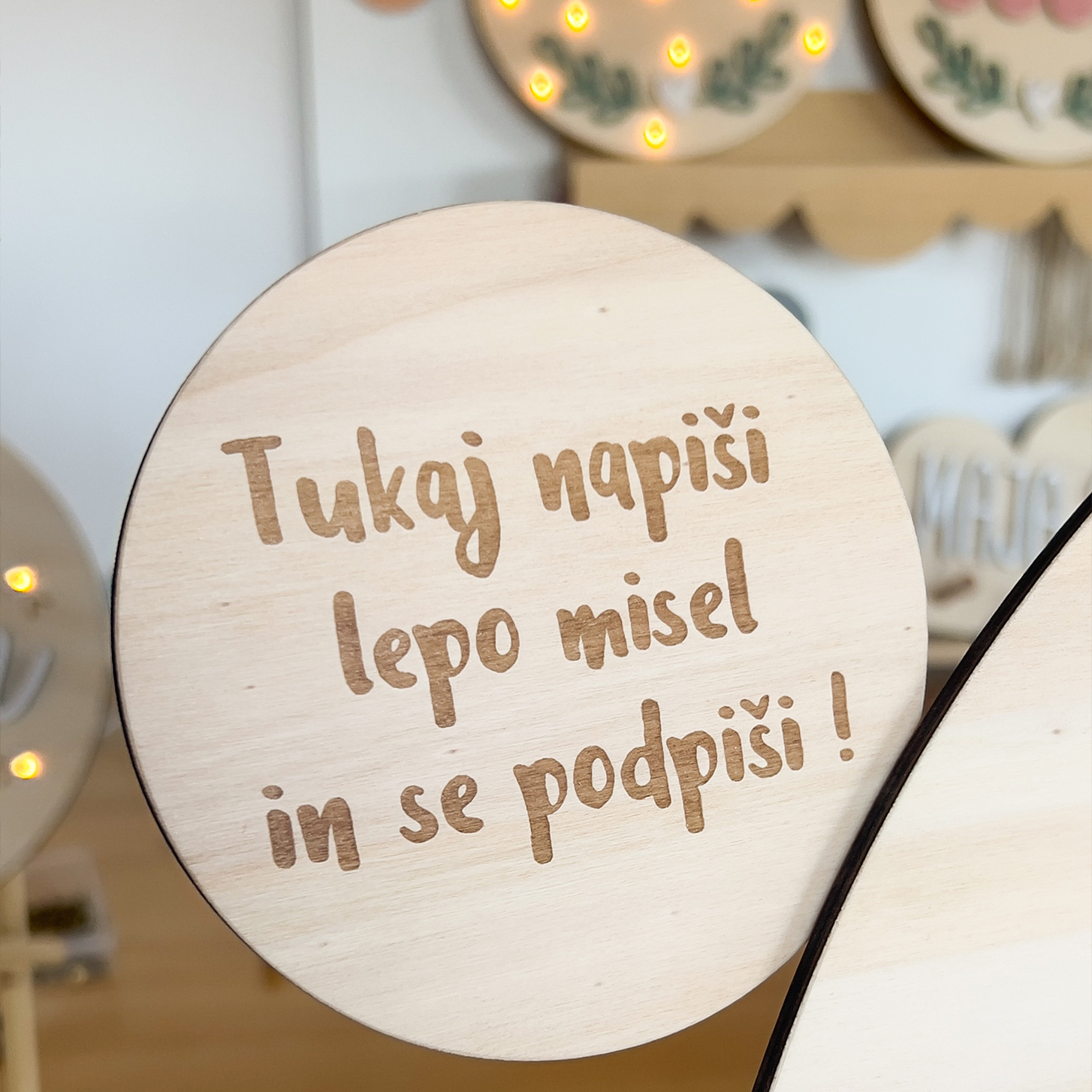 Izdelana je iz visokokakovostnega lesa, natančno obdelana in prilagojena vašim željam. Popolna je kot dekoracija v otroški sobici, lahko jo postavite na stojalo ali obesite na steno, kjer bo vedno spominjala na poseben dan, ko se je rodil vaš mali zaklad.